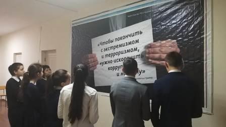 В минувшую неделю администрация района передала ОУ наглядные материалы по антикоррупционному содержанию. Баннер с цитатой выдающегося историка Константина Кушнера доподлинно обнажила главные «язвы» общества — коррупция, нищета, терроризм, экстремизм. А начинать борьбу с этими уродливыми явлениями стоит едва ли не со школьной скамьи. И мы в этом солидарны |