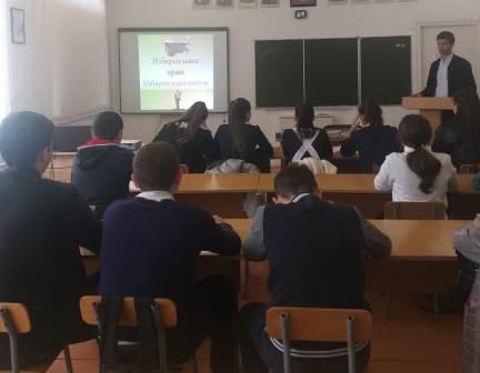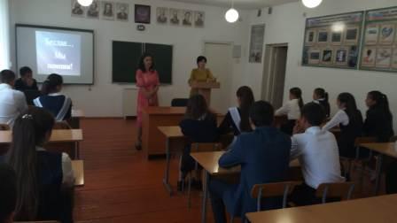 Работники прокуратуры района провели беседу с обучающимися 9-11 классов о Конституции . Мероприятие приурочено к 25 летию основного закона РСО-Алания. |